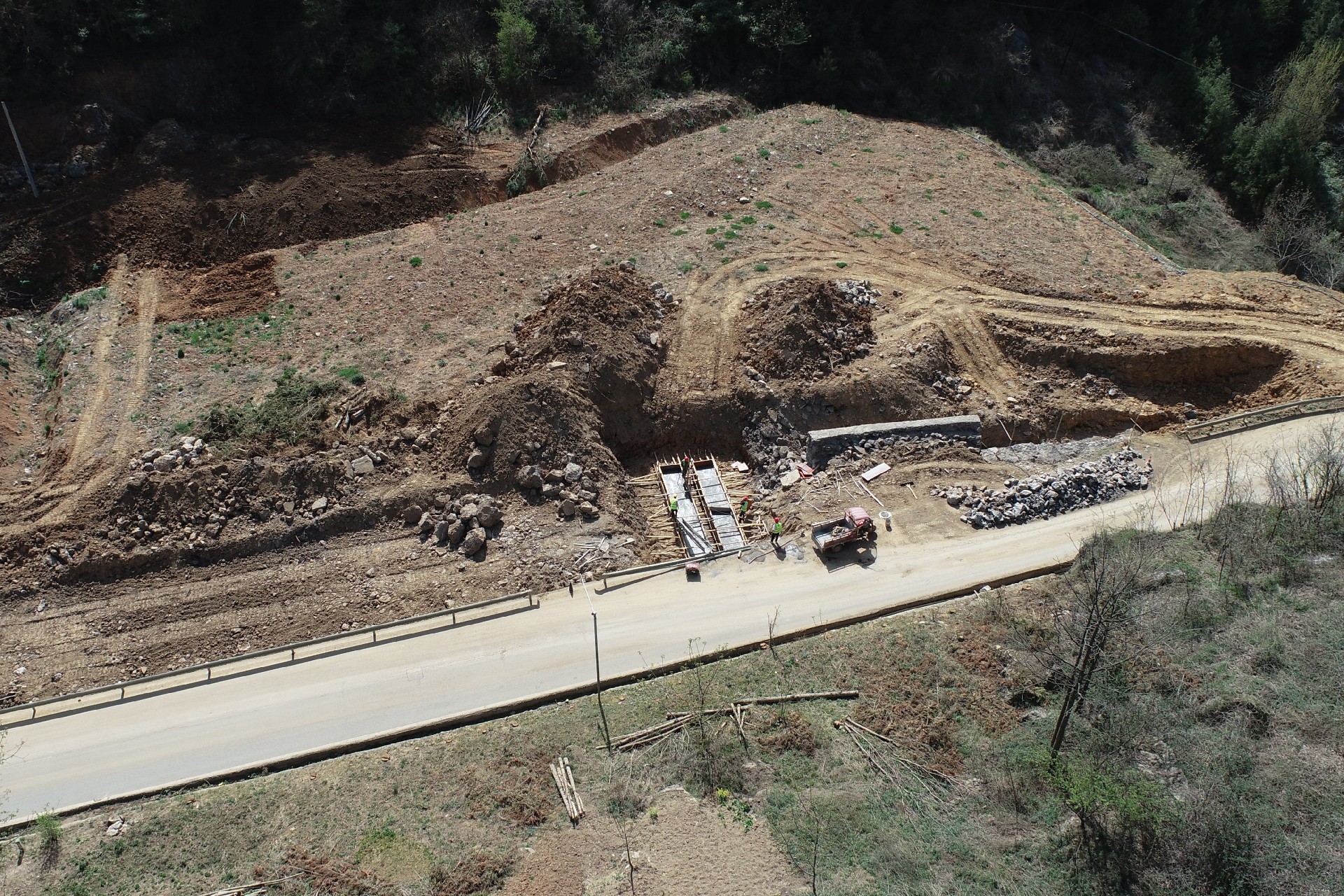 目前正在進(jìn)行主線路基開挖,完成蓋板涵預(yù)制85塊,占總數(shù)52%;擋防工程5023方,占總數(shù)31%;土石方開挖6.5萬方,占總數(shù)12%,利用土石方1.5萬方,占總數(shù)11.5%;場鎮(zhèn)段400米右幅底層6cm油面鋪設(shè)。
